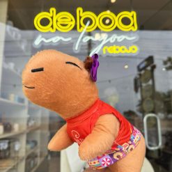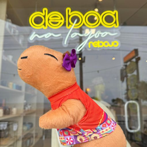 A Capivara é a nossa mascote De boa na Lagoa, macia e fofinha, a pelúcia é hipoalergênica com enchimento de fibra siliconada. Tem cerca de 30cm de comprimento e acompanha um mini abadÁ Ziriguidum pra ela, com impressão digital, exclusiva da Rebojo. É um ótimo presente para crianças e adultos!