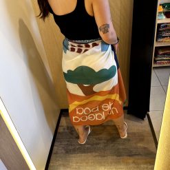 Canga modelo pareô, leve e versátil.